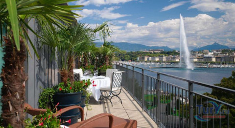 Далее мы проследуем к набережной Mont-blanс. На ней расположены самые дорогие отели и открывается панорама на небесно-голубое озеро Леман и главную достопримечательность города – фонтан. Это самый высокий фонтан в Европе, символ Женевы. Фонтаном можно любоваться и с моста Монблан.