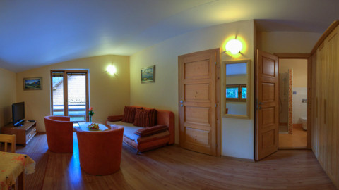 До найближчої автобусної зупинки всього 30 метрів. Відстань до термальних парків Липтовски Ян і Татраландія становить 10 км