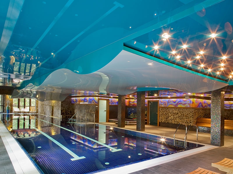 На території готелю гості можуть відвідати спа-салон і наступні спортивні об'єкти: тренажерний зал, стіна для скелелазіння, більярд, а також оздоровчий центр з критим басейном, дитячим басейном, різними саунами, тепідарій і гідромасажною ванною. Крім цього, на даху готелю встановлена гідромасажна ванна з видом на гори на відкритому повітрі.