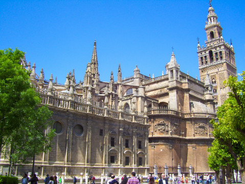 Богатая история Севильи нашла отражение в ее облике. Большая часть достопримечательностей города находиться в старой части города, на левом берегу реки Гвадалквивир, самой яркой из которых является Севильский Кафедральный собор (Catedral de Santa María de la Sede de Sevilla). Строился он на протяжении 100 с лишним лет, с 1401 по 1519 гг. Высота этого монументального сооружения составляет 116 метров, а длина - 76 м. Собор поражает своим нарядным и, даже, торжественным видом, который как нельзя лучше подчеркивают высочайший купол и монументальные колонны.