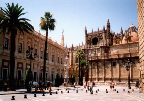 Напротив Собора и Хиральды располагается Площадь святой покровительницы королей (Plaza de la Virgen de los Reyes), рядом с которой также можно увидеть гордо стоящий дворец Алькасар, который изначально принадлежал мавританским правителям, а после завоевания Севильи Испанией стал резиденцией христианских королей. Дворец-крепость Алькасар — маленькое «государство в государстве», стоящее посреди города. С дворцами в мавританском стиле, галереями, мощенными мрамором двориками, фонтанами, водопадами, скульптурами, садами.