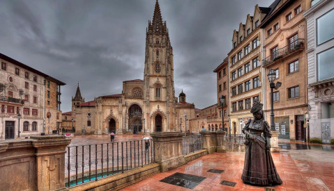 До сегодняшних дней в Овьедо и его окрестностях сохранилось 14 древних церквей дороманской эпохи. Кафедральный собор Сан-Сальвадор (XIV в.), с монументальной колокольней является символом испанского христианства благодаря наличию Пантеона астурийских королей и трем его главным реликвиям - мощам святого Винсента и двум распятиям, подаренными королем Альфонсо III — Ангельский крест (Крус-де-лос-Анхелес) и Крест победы (Крус-де-ла-Виктория). Вокруг собора Овьедо, окруженного фрагментами средневековых городских стен, находится исторический центр со множеством древних церквей, площадей и старинных особняков. К лучшим образцам городской архитектуры относятся фонтан Ла-Фонкалада (IX в.), университет Овьедо (1574-1608 гг.), городская ратуша Каса-Консисториал (1662 г.), часовня Ла-Балескида (XIII в.), монастырь Сан-Висенте (VIII в.), в котором ныне расположился Археологический музей Астурии, церковь Сан-Тирсо (IX в.), церковь Сан-Исидро (XVI в.), особняк Льянес (XVIII в., его барочный фасад считается лучшим в Астурии), особняки Касас-дель-Сюито (XX в.) и Деан-Пайяринос (XX в.), монастырь и церковь Санто-Доминго (XVI в.) и монументальныйкомплекс рынка Эль-Фонтан (XVII-XVIII вв.).