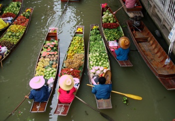 Соляні поля в провінції Самут Сонгкрам; «Ринок розкриває парасольок» - Найнебезпечніший ринок (по Книзі Рекордів Гіннеса);