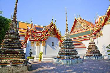 Храм Лежачого Будди був заснований майже за 2 століття до того, як Бангкок став столицею, і вважається найдавнішим буддистським спорудою міста. На території храму, площею 8 гектарів, знаходиться понад 1000 зображень Будди, більшість яких були привезені з давніх столиць тайських держав - Аюттхаи і Сукхотая.