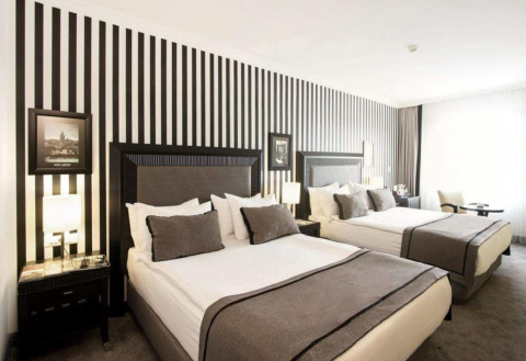Deluxe room площею 24 кв.м. з одним ліжком king-size. Номери відрізняються видами і можуть бути з видом на сад, парк Gezi або на Босфор. Всього 74 таких номера в готелі