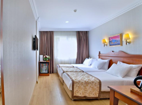 Ресторан-тераса на даху готелю відкриває чудовий вид на Старий Півострів - Храм Святої Софії (Hagia Sofya), Блакитну мечеть (Blue Mosque), а також місце, де протоку Босфор (The Bosphorus) впадає в Чорне Море (The Black Sea).