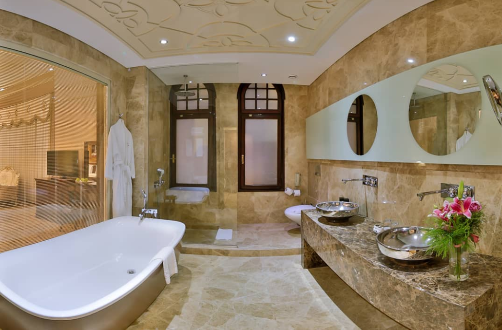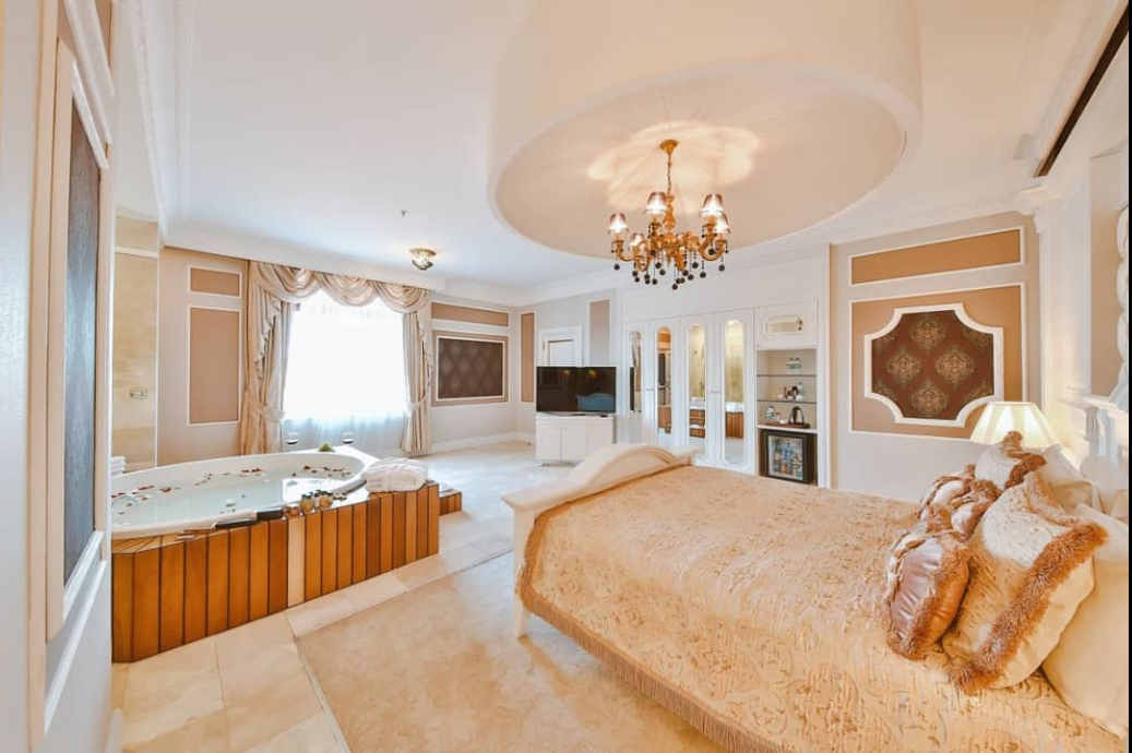 В Junior сьютах подвійні вікна, ванні з джакузі і вітальні. Супутникове ТБ, бездротовий інтернет, мінібар, сейф, письмовий стіл, фен і ванні приналежності, халат, тапочки, шампунь, мило, зволожуючий засіб, гель для душу. У всіх номерах ванні з джакузі і розписні вікна.