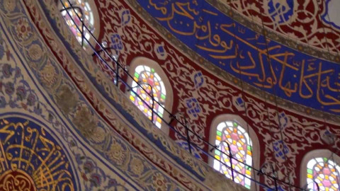 Своя більш поширена назва - Блакитна мечеть - у храму з'явилося завдяки кахлям, якими оформлені внутрішні стіни. Фактично це плитка ручної роботи, виконана на замовлення на ізнікскіх фабриках. Всього в інтер'єрі використано близько 20 000 шматочків такої плитки. Відмінною особливістю ізнікской кераміки, крім високої якості, є колірна гамма - найчастіше біло-блакитна. Стеля куполів прикрашають сутри з Корану та інші цитати шанованих мудреців. Підлоги мечеті як зазвичай вистелені килимами, в Блакитній мечеті вони червоного і вишневого кольорів.